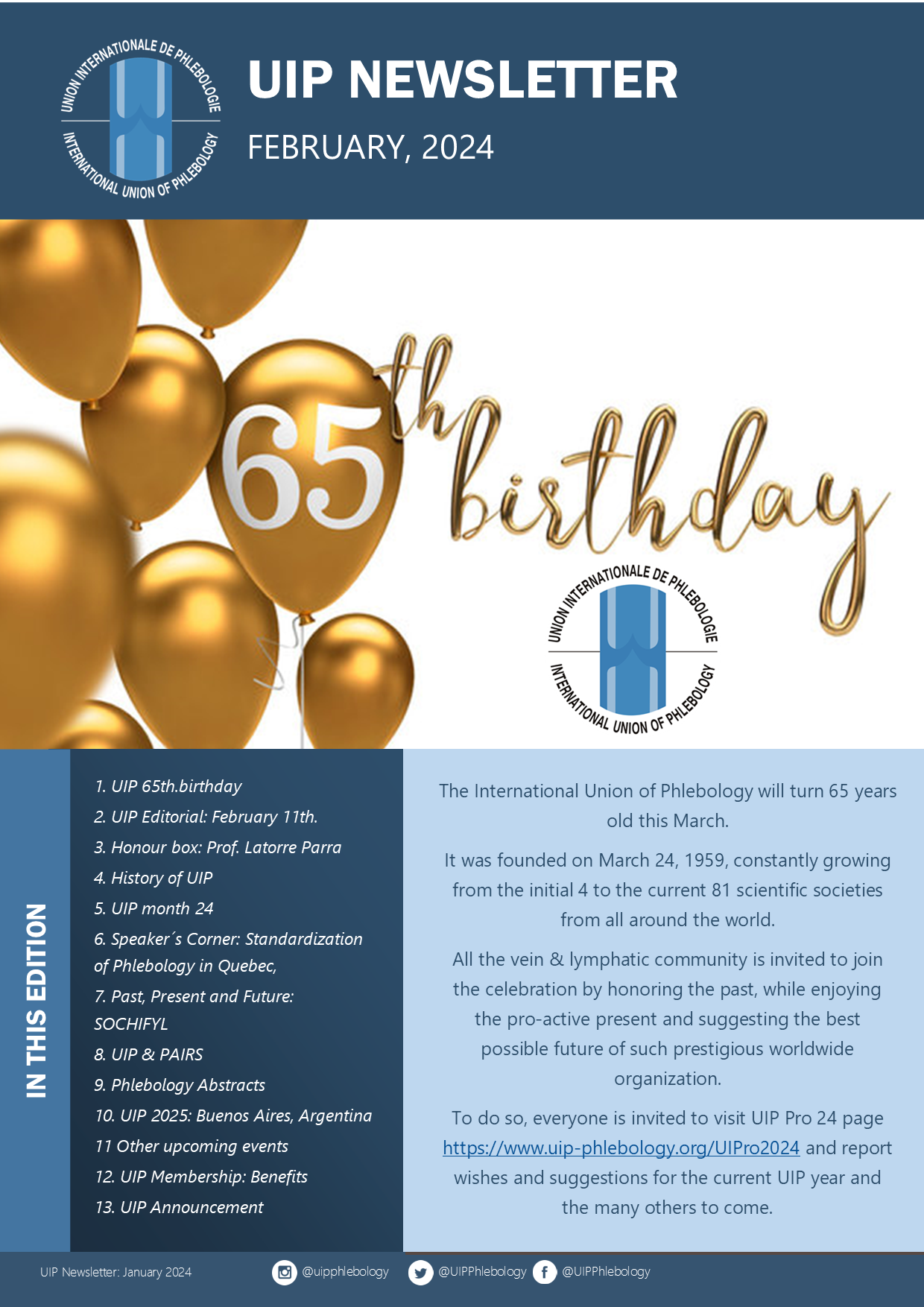 The UIP regularly products a newsletter that is distributed worldwide to its members and to those with an those with an interest in Phlebology. To receive the newsletter, please us the form below.