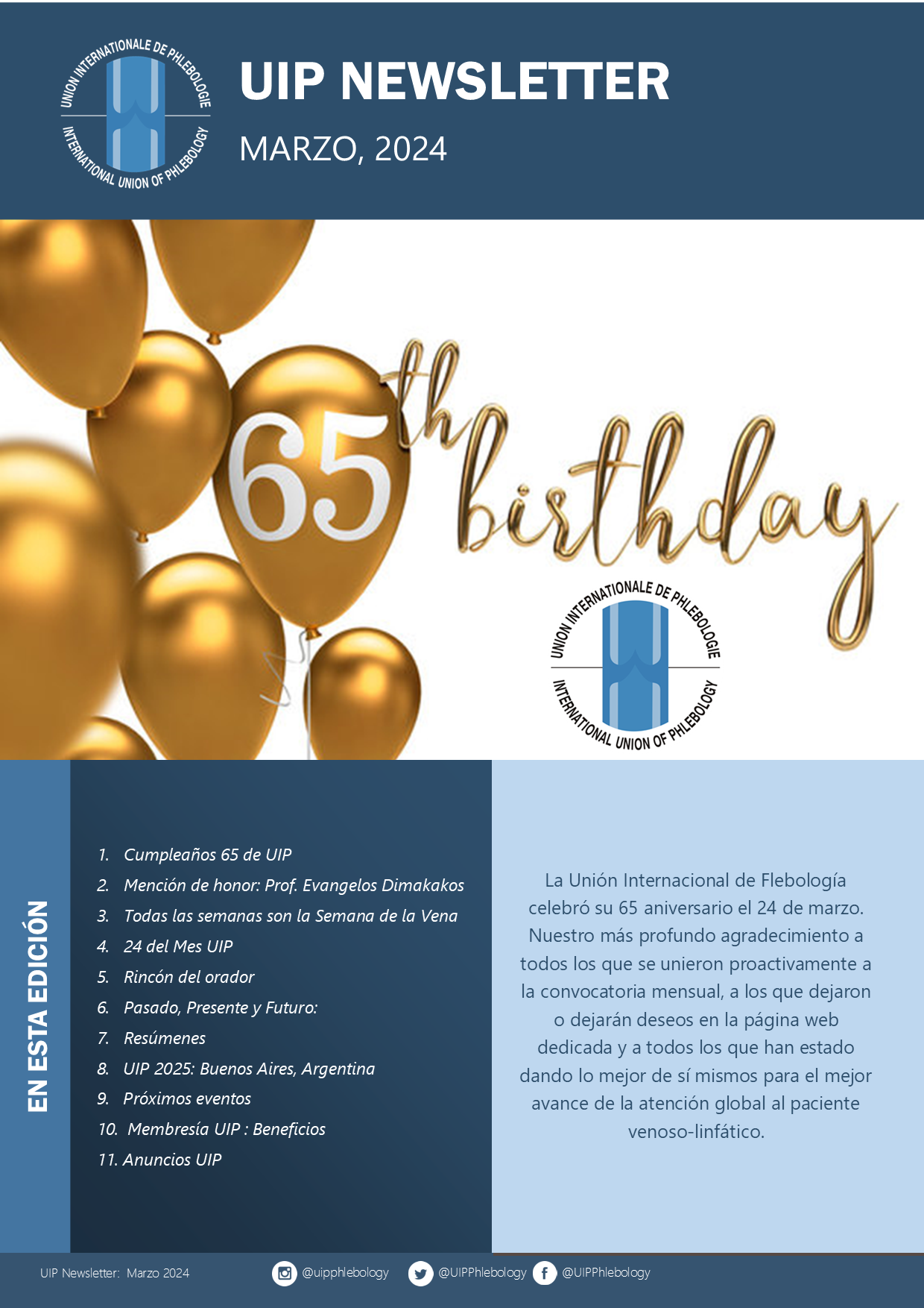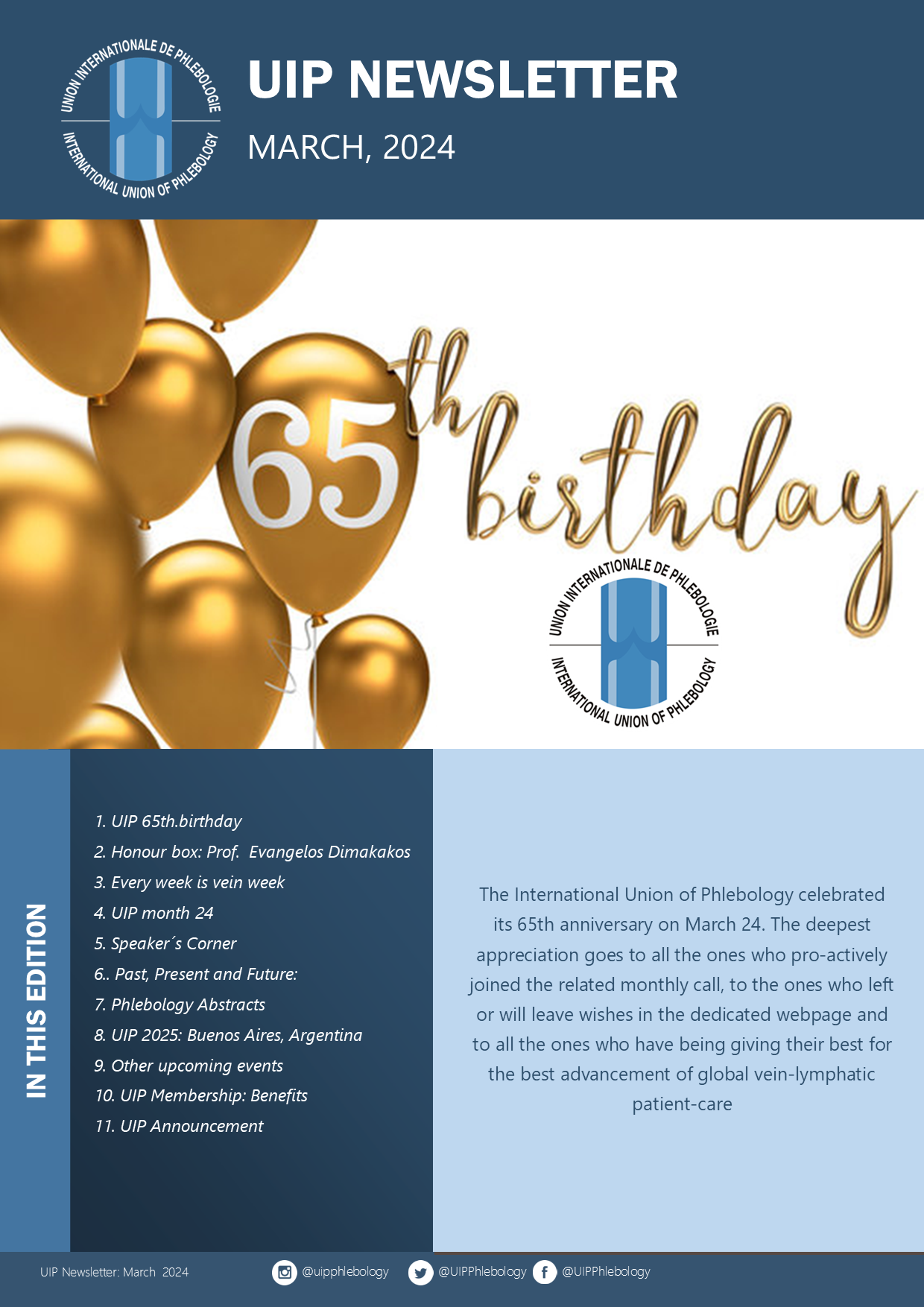 The UIP regularly products a newsletter that is distributed worldwide to its members and to those with an those with an interest in Phlebology. To receive the newsletter, please us the form below.