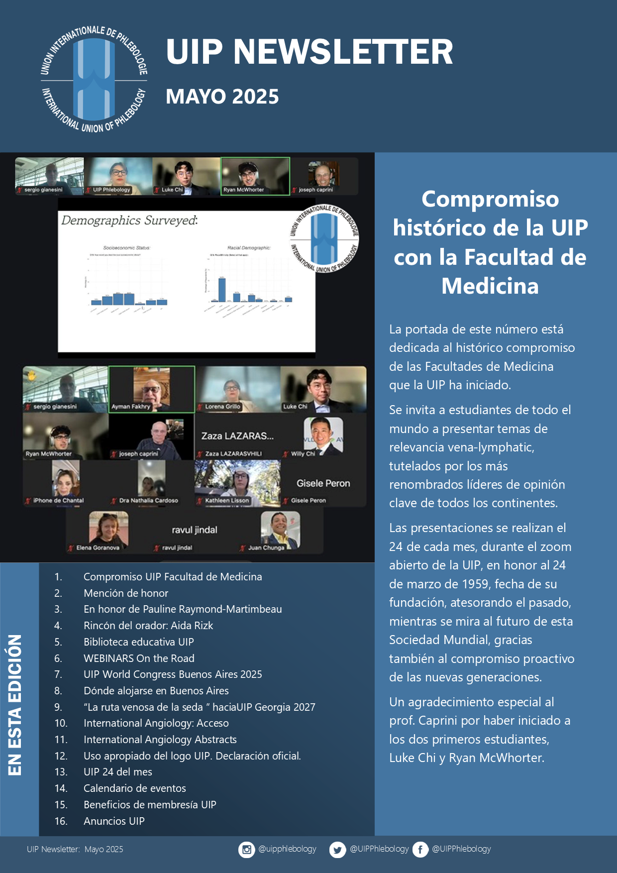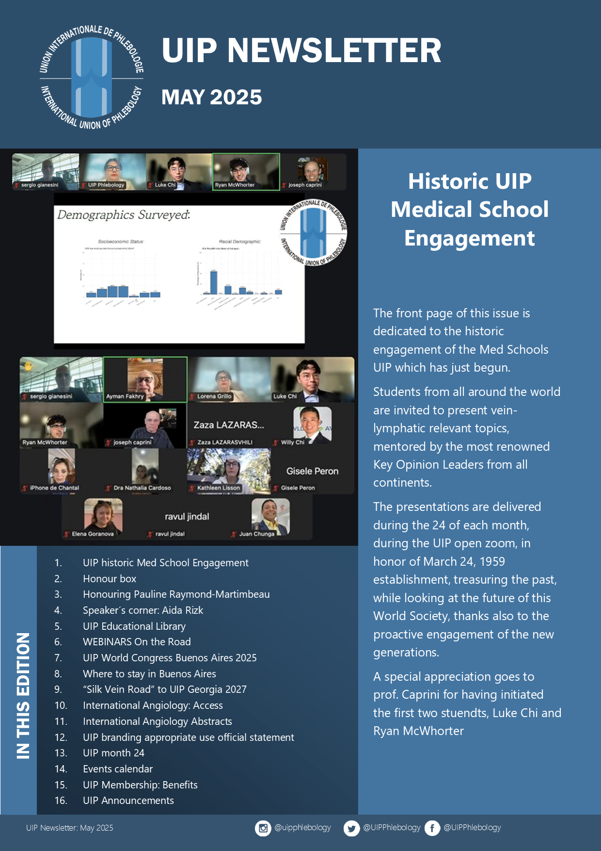 The UIP regularly products a newsletter that is distributed worldwide to its members and to those with an those with an interest in Phlebology. To receive the newsletter, please us the form below.