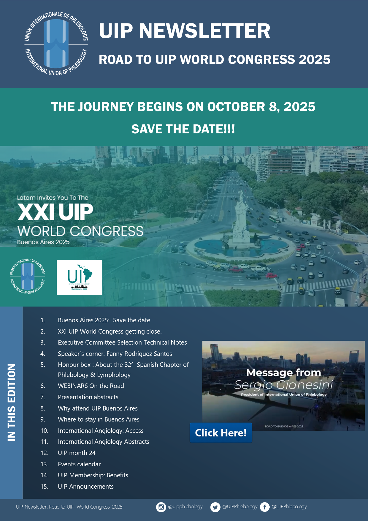 The UIP regularly products a newsletter that is distributed worldwide to its members and to those with an those with an interest in Phlebology. To receive the newsletter, please us the form below.